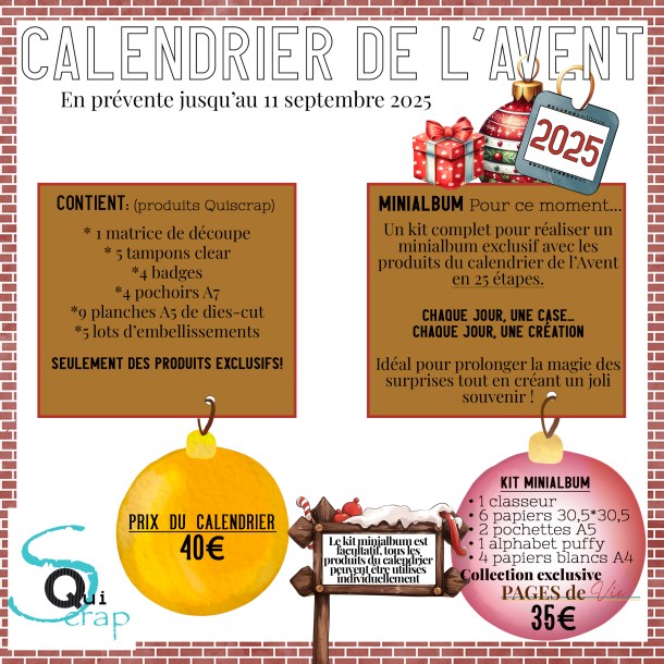 Vous aurez l’occasion également de craquer pour le calendrier de l’Avent 100% Quiscrap et son minialbum assorti.