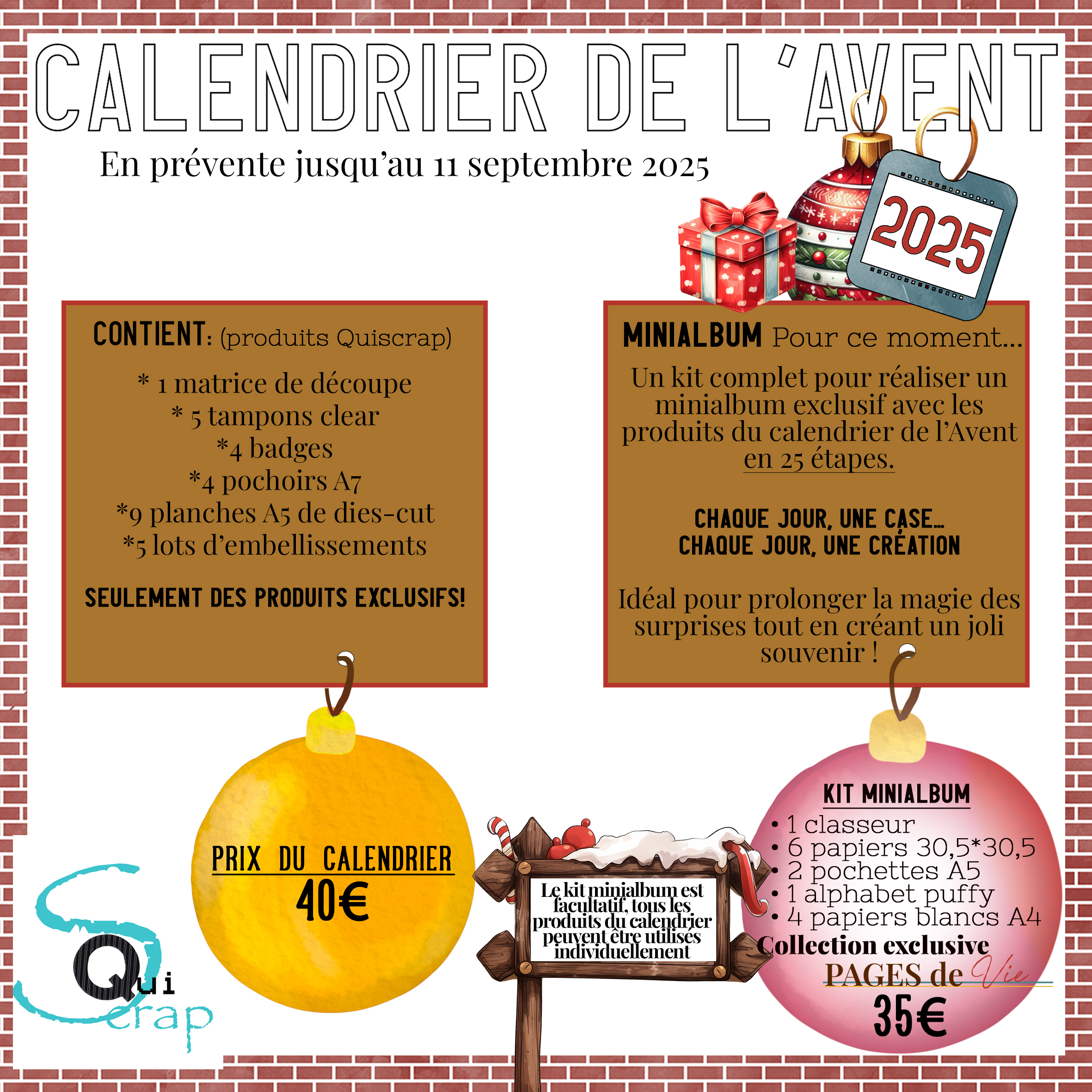 Vous aurez l’occasion également de craquer pour le calendrier de l’Avent 100% Quiscrap et son minialbum assorti.