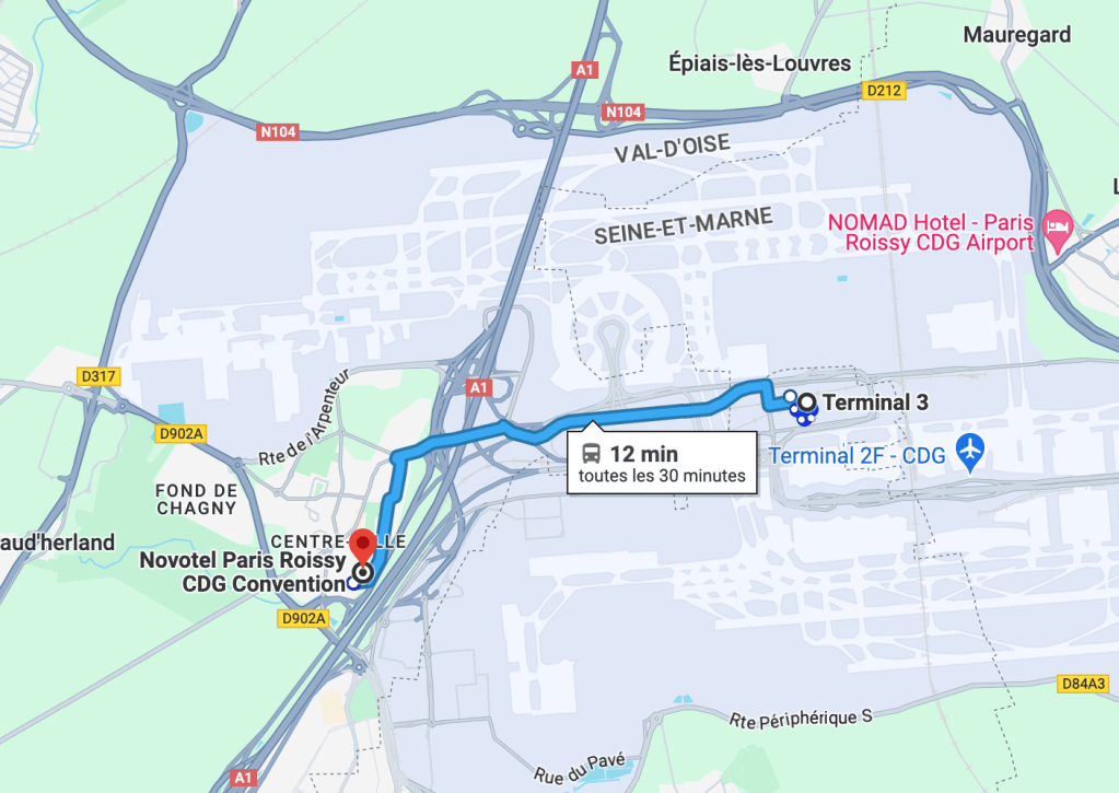 Depuis Paris (centre) prendre RER B jusqu’à Roissypole (25min),