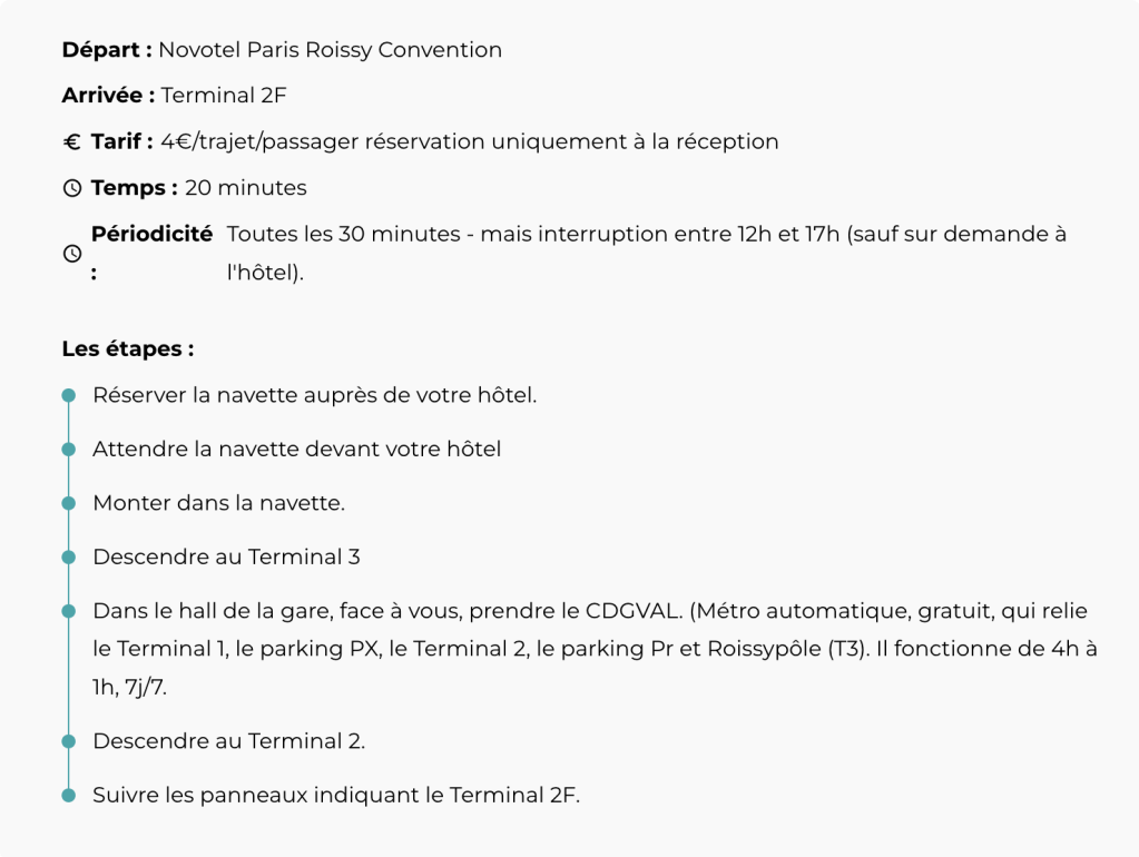 Navette de l’hôtel payante à 4€ (de Roissypole vers hôtel / hôtel vers Roissypole)