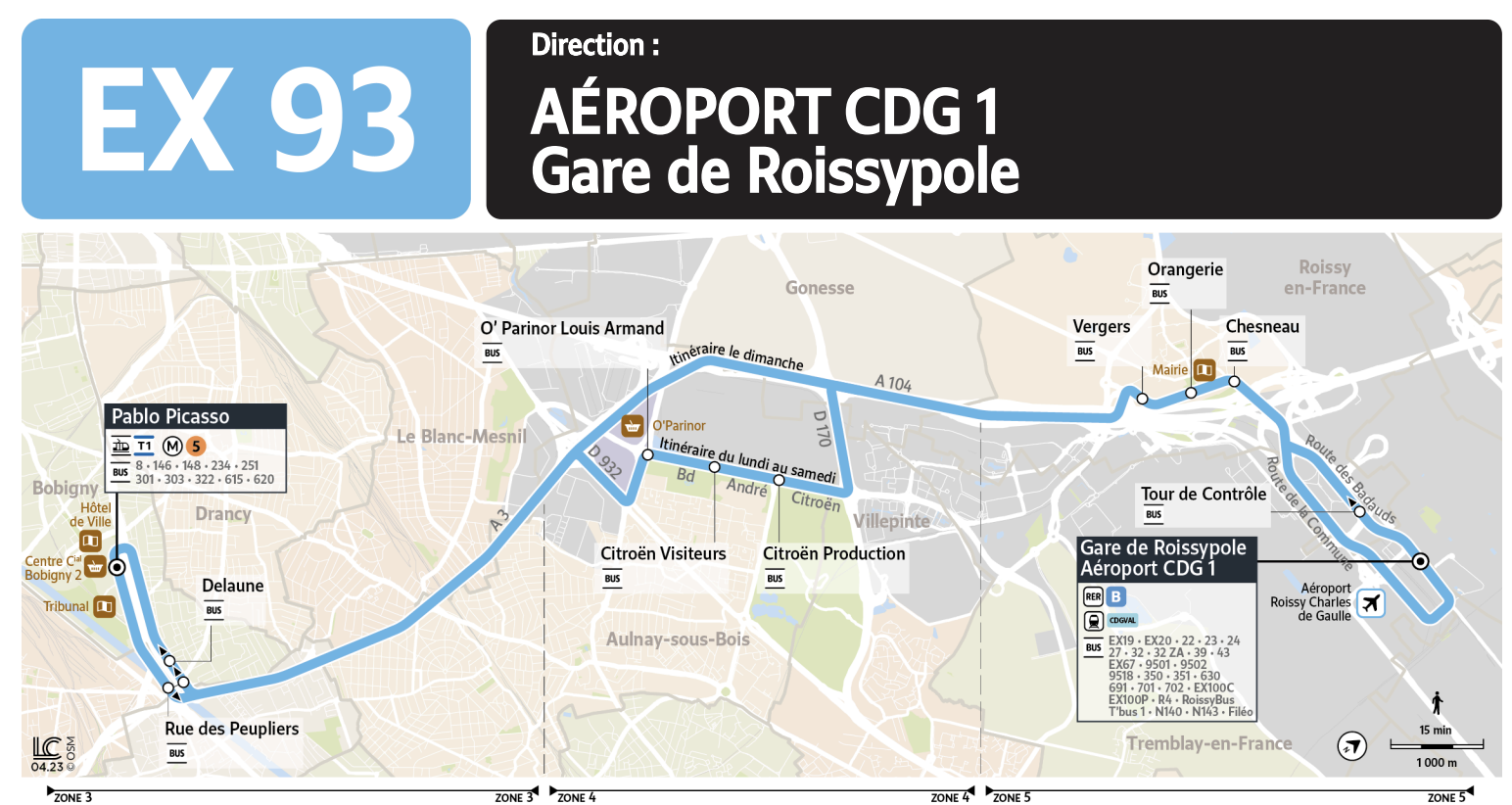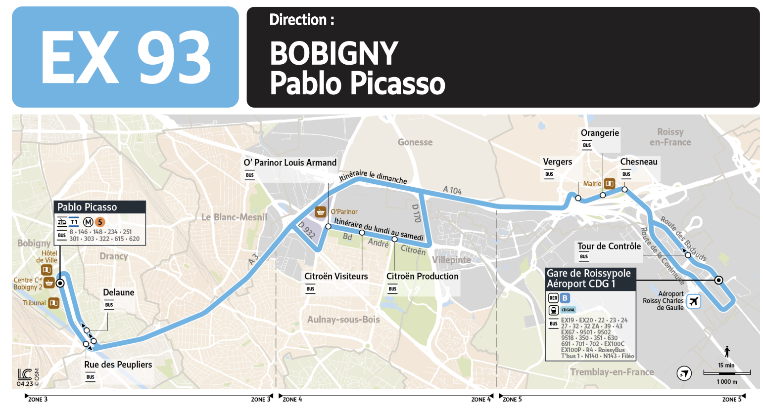 Voici les horaires pour le trajet de la ligne de bus EX93 (Bobigny/ arrêt Vergers, qui vous dépose devant l’hôtel.) mis à jour le 25 AOUT 2025.