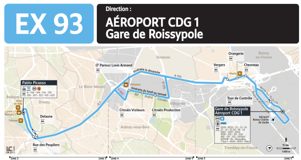 puis BUS EX93 direction Bobigny(à l’extérieur de la gare), arrêt « VERGERS » (7min), (l’hôtel se trouve à 100 Mètres à pieds). (voir horaires ci-dessous).