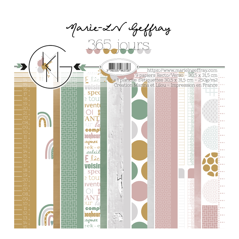 Aujourd’hui nous vous présentons Marie-LN Geffray qui sera présente au Salon Paris Scrap Festival avec sa toute nouvelle collection « 365 jours ».