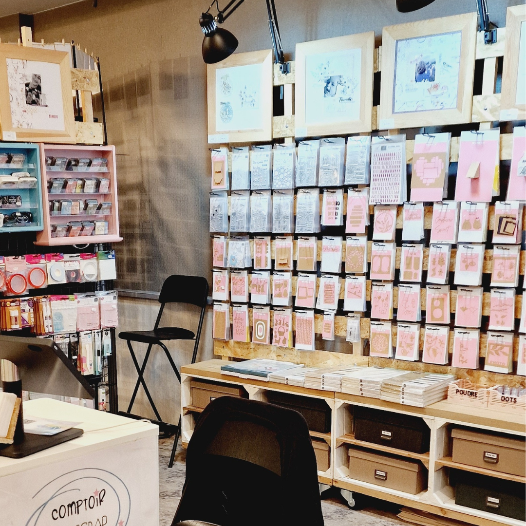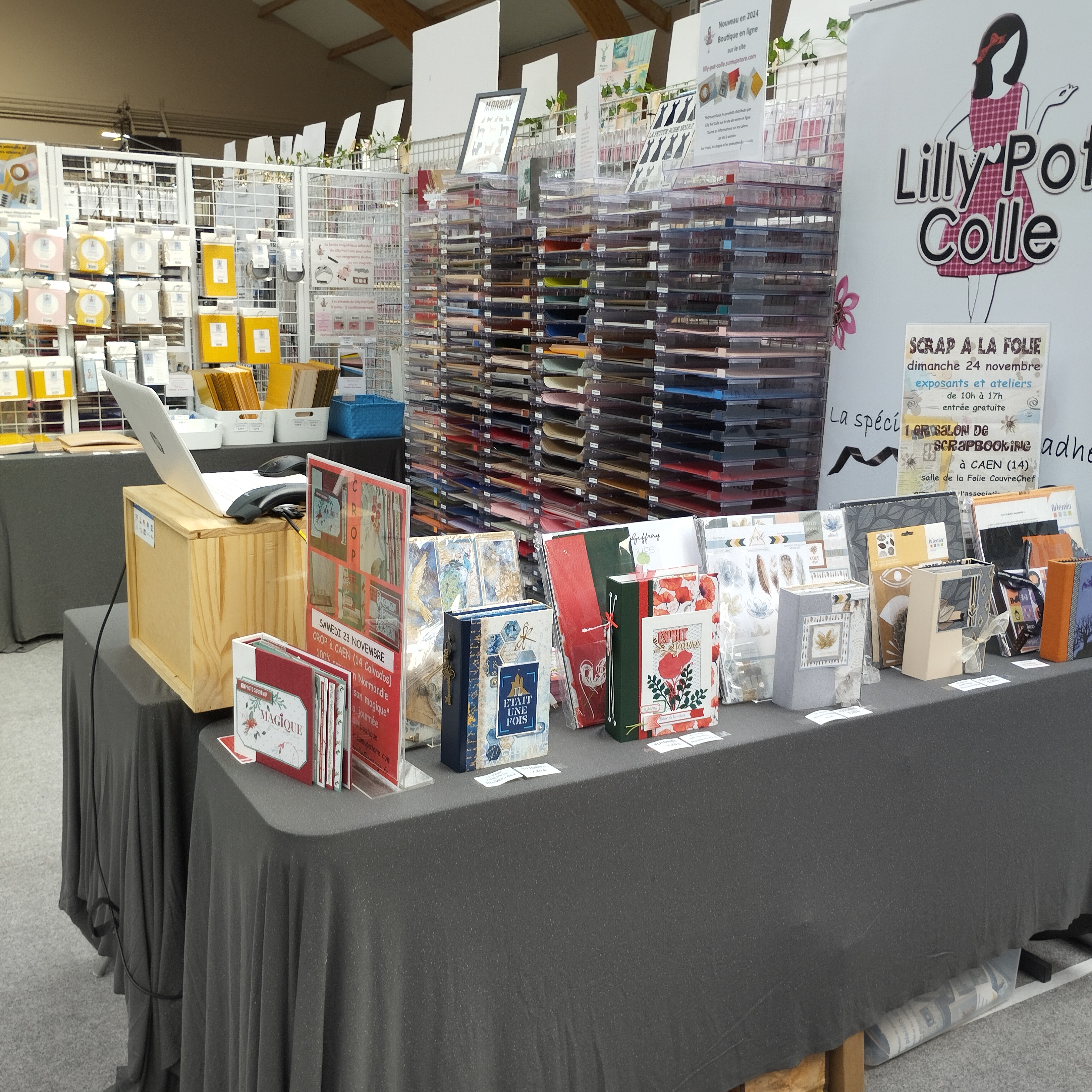 Particulièrement heureuse de pouvoir être présente cette année au salon « Paris Scrap Festival », je viendrai donc vous présenter tous les produits de ma petite marque : Collection de papiers, unis coordonnés, étiquettes, badges, matrices de découpe, tampons, pochoirs, stickers en relief, embellissements, classeurs, pochettes, mais également les kits des mini albums que je propose en crops, ainsi que les tutoriels de mes divers projets.