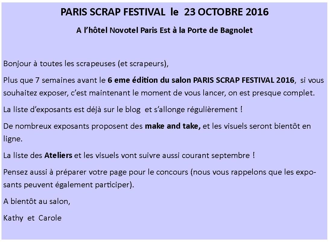 Les Exposants du Paris Scrap Festival 15 Octobre 2017